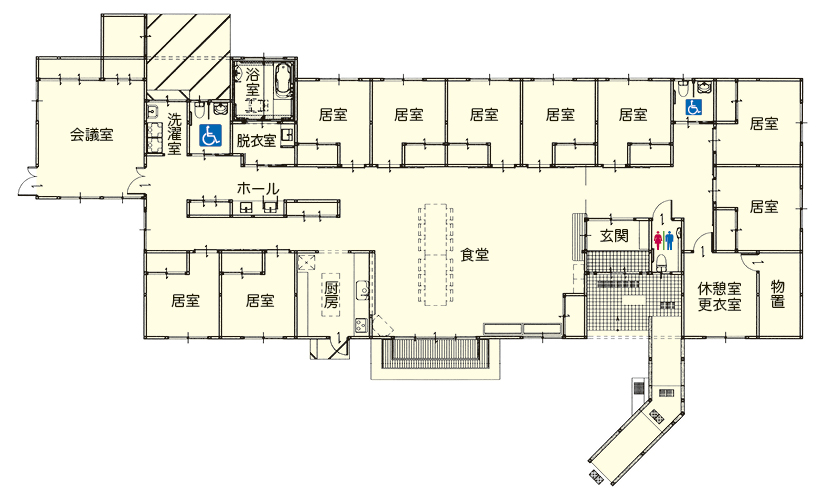 各居室にエアコンを設置し、ご自分の気に入った家具を持ち込むこともでき、ゆったりと過ごしていただくことの出来るプライベート空間となっております。