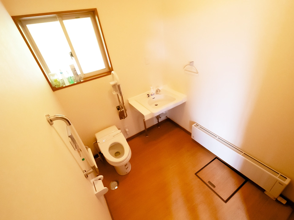 車椅子の方でも安心してお使いいただける広いスペース、必要な部分への手摺りの設置、こまめな掃除で清潔に保っております。