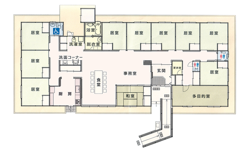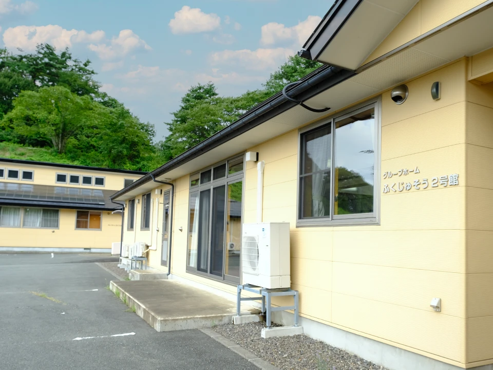 2007年に開所したグループホームふくじゅそうは、市の中心部に近い環境にありながら、時々カモシカが遊びに来るほどの大自然も味わえます。スタッフの定着率が高く入居者と馴染みの顔ぶれになっています。